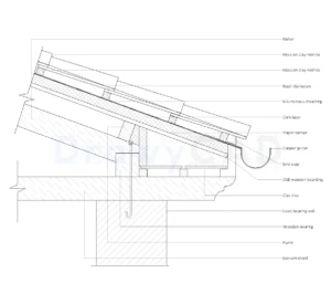 Download this expertly crafted DWG file showcasing classic truss roof with clay tiles and copper gutter with intricate details. A perfect architectural blueprint to support projects involving details,roofs,truss roofs. Ideal for accurate construction planning!