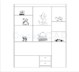 Download this expertly crafted DWG file showcasing wall bookcase with toys with intricate details. A perfect detailed CAD drawing to support projects involving blocks,bookcases,furniture. Ideal for accurate construction planning!