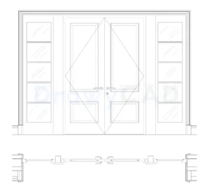 Looking for a construction drawing of wooden door with glass panels? This DWG file provides a precise and professional design, ideal for architects and engineers working on blocks,building materials,doors. Download now for accurate reference!